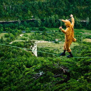 Andy Lewis is a 27 year old extreme sports athlete and musician. He is most known for his tricklining and performance with... Madonna on stage at half time in 2012, but he is also an avid BASE jumper and rock climber. Many of his songs talk about the slacklife, and keeping it slack. This refers to the metaphor of using what you learn slacklining, to normal life. Breathing, relaxing, focusing.